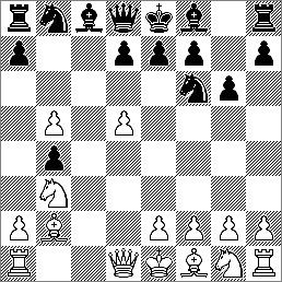 10.0–0 Tb8 11.a4 h6. Für das Manöver 11. ... cxd4 12.exd4 e5 13.dxe5 dxe5 14.La3 Te8 15.Se4 und Weiß steht auf Gewinn, war es nun bereits zu spät.